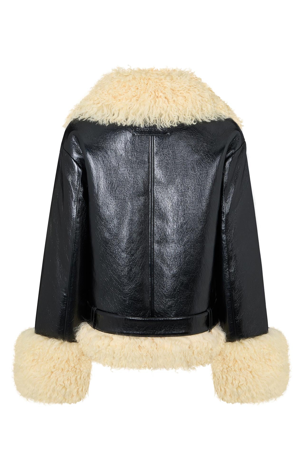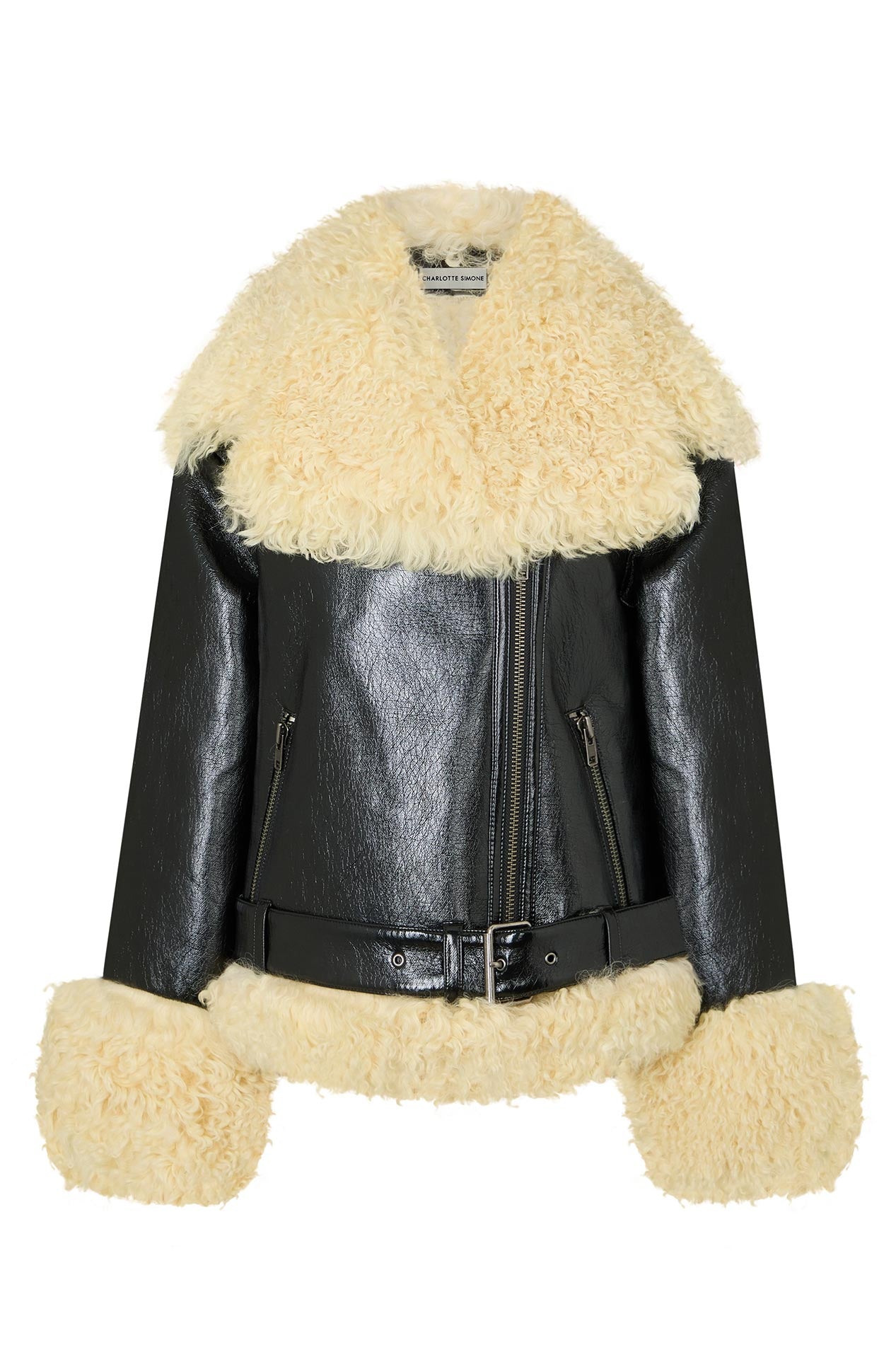 Crafted from faux patent pleather and custard yellow shearling, Bowie the biker jacket adds instant attitude to your winter wardrobe. Cut to a relaxed & oversized fit, accessorised with zipped pockets & classic biker hardware, Bowie will ensure a touch of grungy glamour to your everyday basics.