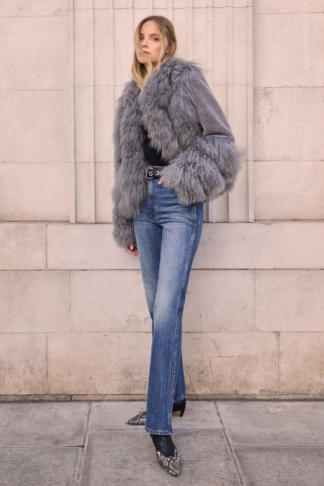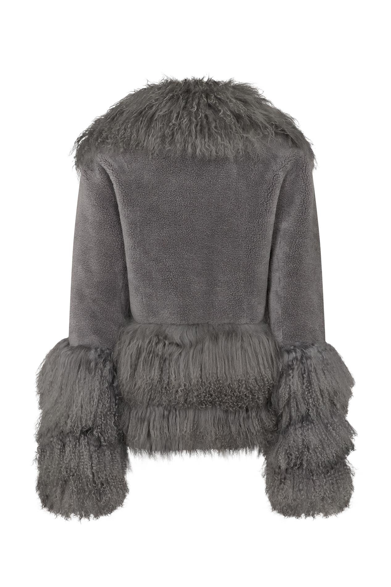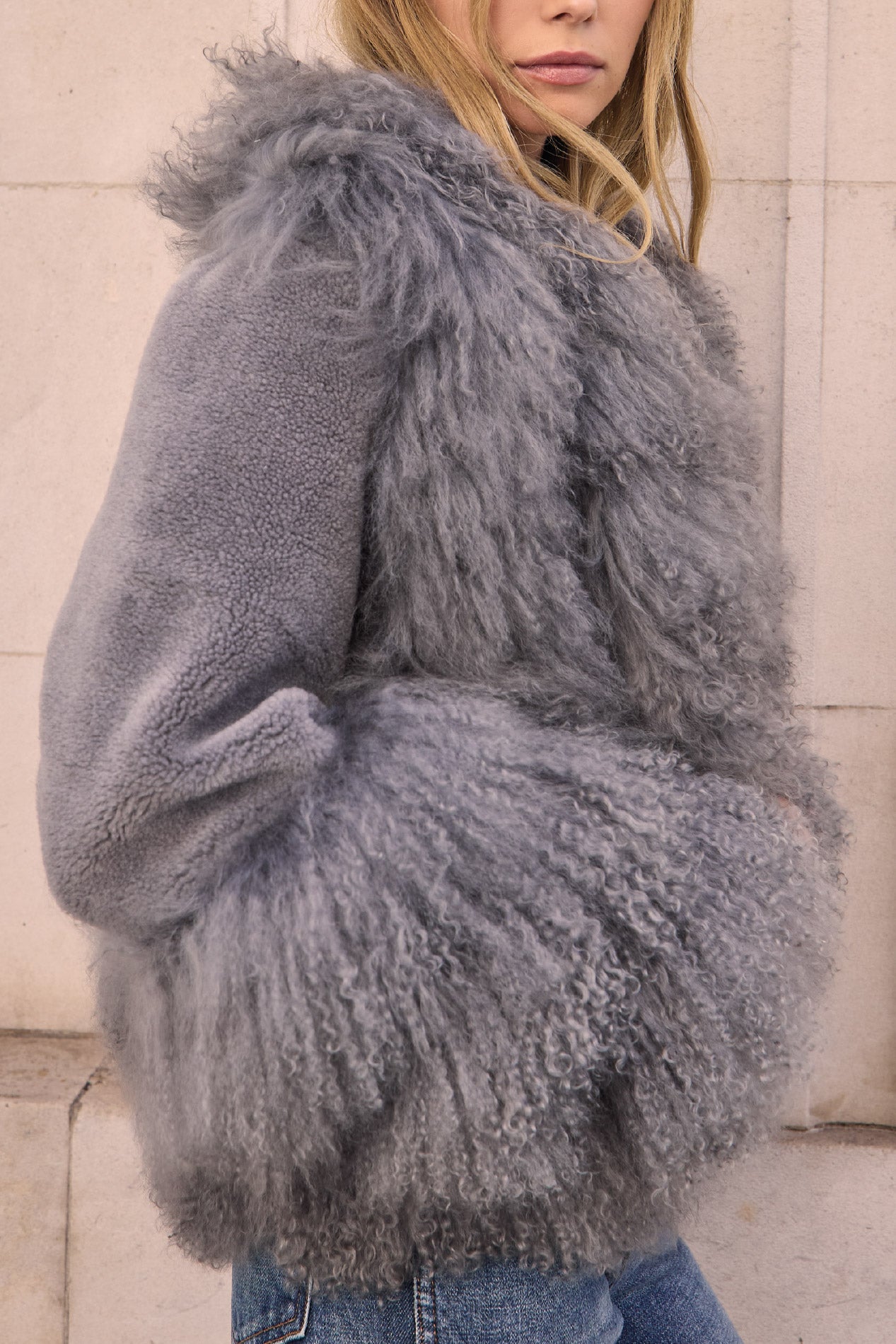 Soft, smoky grey tones meet plush shearling textures in the Carly Jacket. Its sculpted fit and voluminous trims give it a modern yet cozy feel. Equal parts chic and functional, Carly is the perfect throw-on piece for elevated everyday layering.