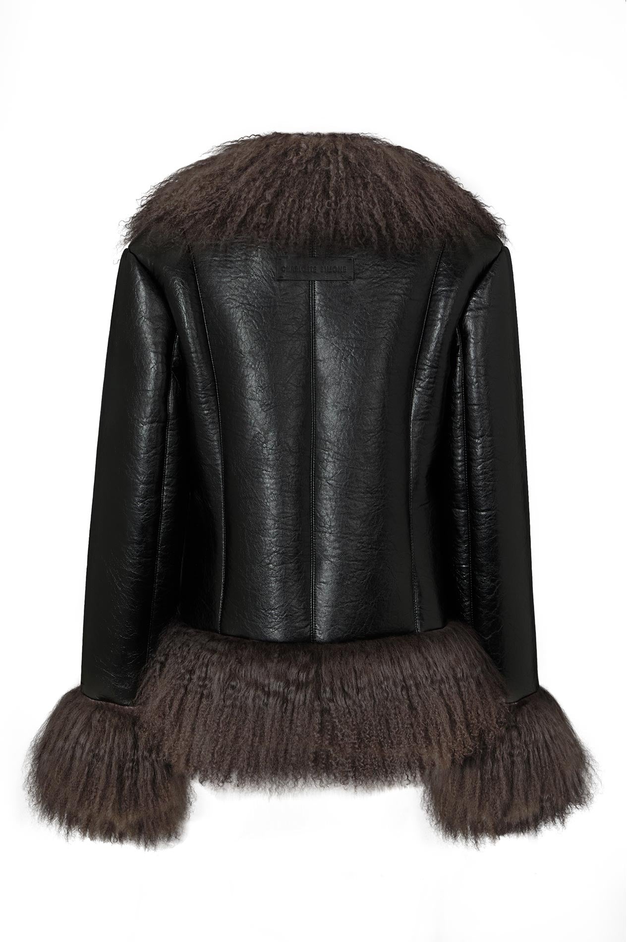Fashioned from a distressed pleather, Mongolian trims & lined with faux fur chocolate brown panels, this jacket feels both textured and luxurious. Cropped at the waist for a flattering fit, Iggy's silhouette and distressed pleather details make her easy to pair with everyday basics.