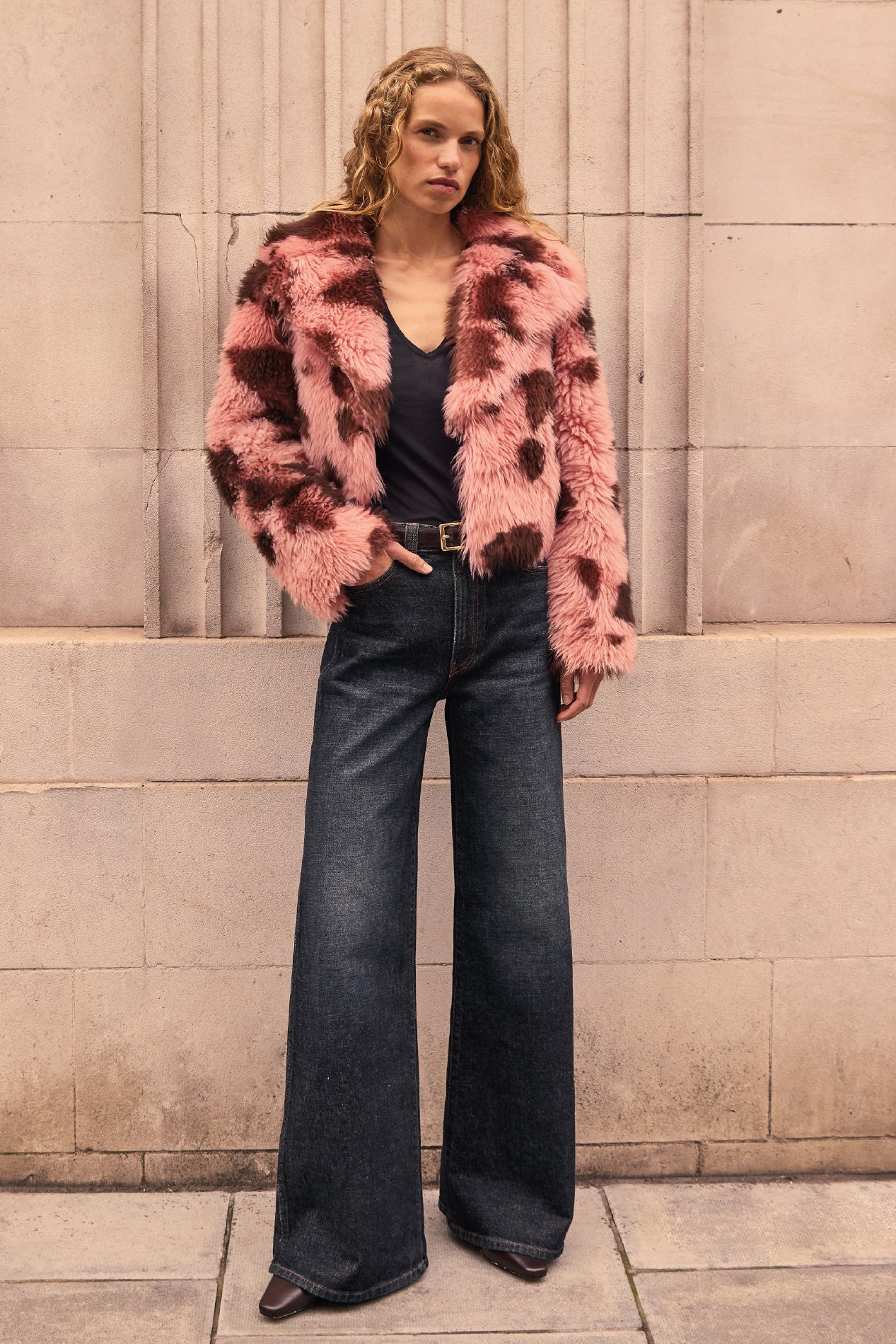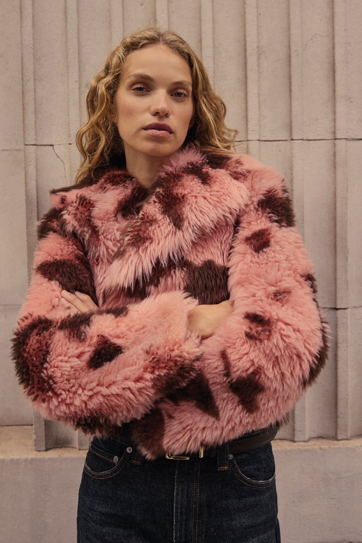 Make a statement in the candy coloured Kitty. Cropped at the waist for a flattering fit and finished with a hook and eye closure. Each Kitty coat is hand dyed and hand crafted with natural shearling, making each piece unique. Wear with anything from jeans to a little black dress and watch heads turn.