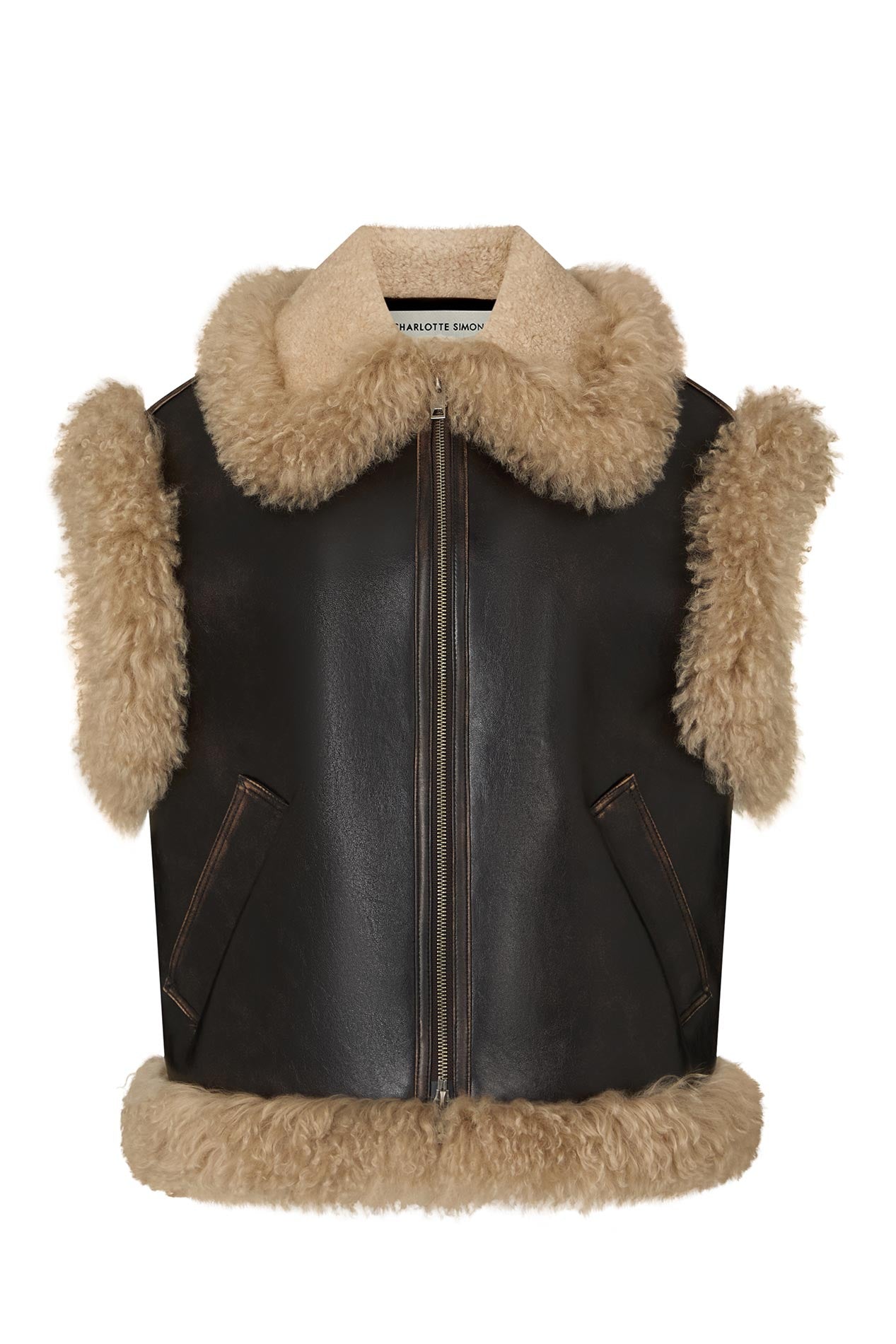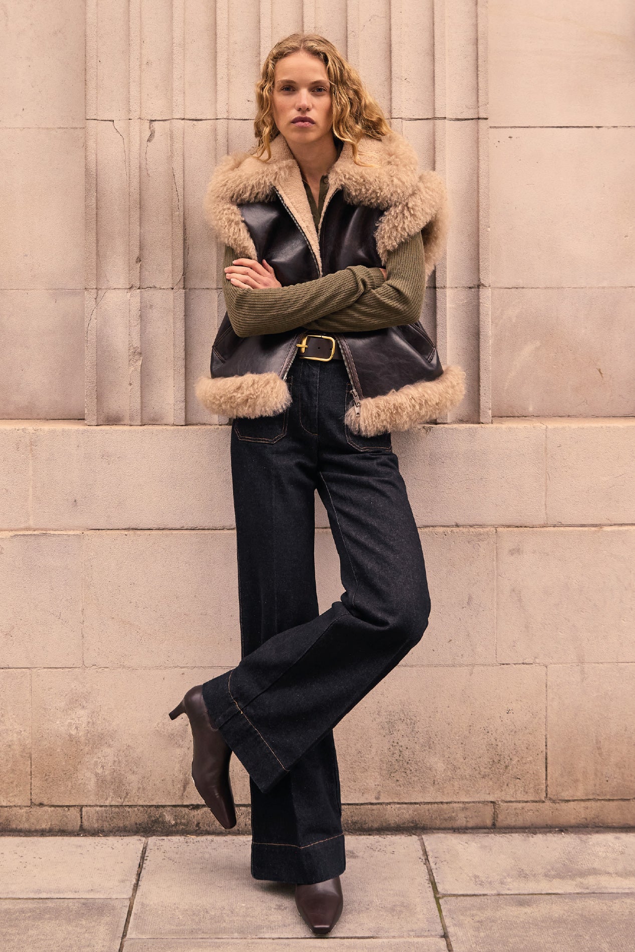 Make a statement in Sadie. Crafted from distressed faux leather and shearling trims, the Sadie gilet is a staple for layering up during the transitional months. Finished with a zipper closure and a relaxed fit, it slips on comfortably over chunky sweaters. Layer over a mini dress or jeans for instant 'it-girl' glamour.
