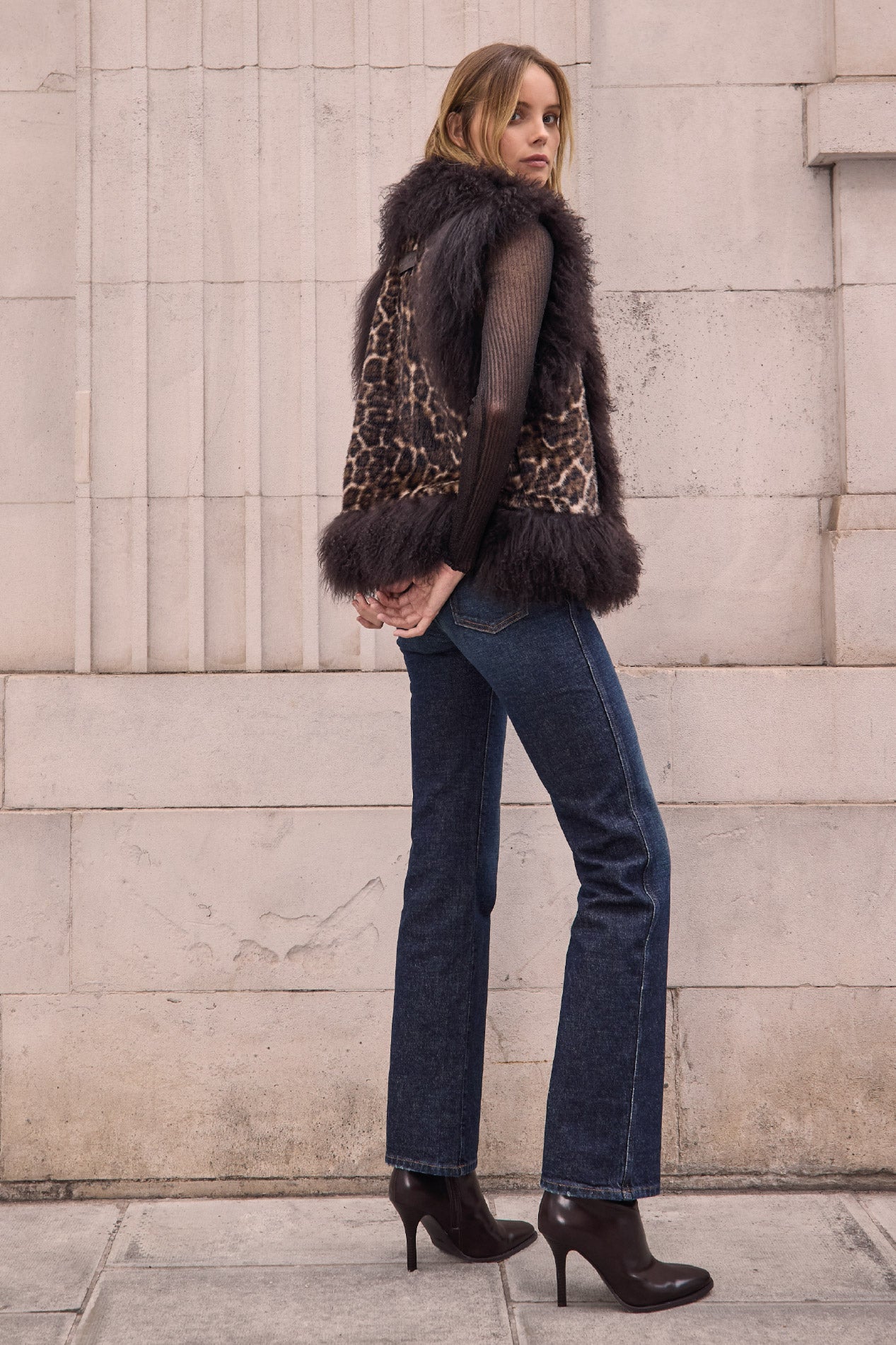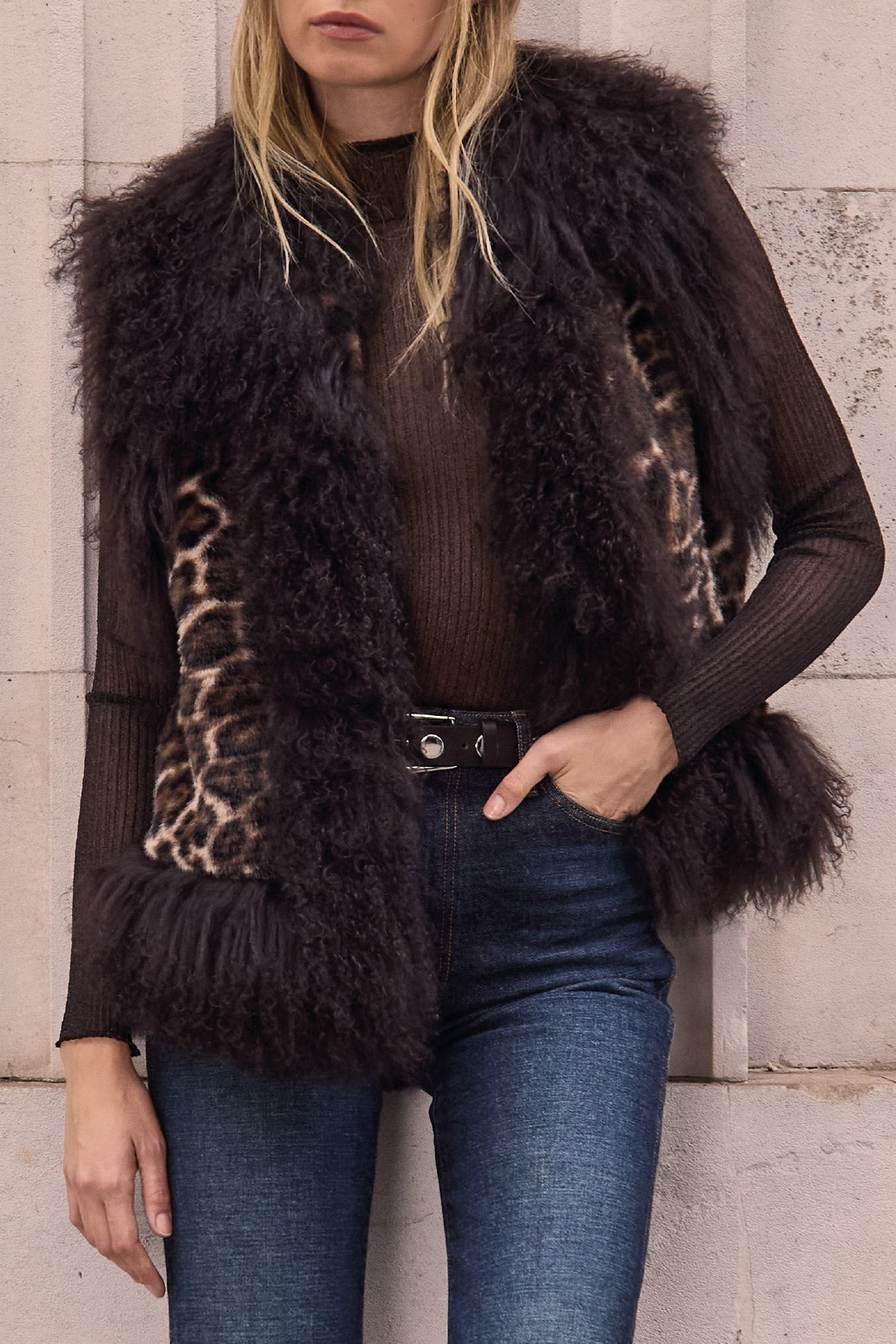 Make a statement in Stevie. Crafted from faux fur and Mongolian trims, the Stevie gilet is a staple for layering up during the transitional months. Finished with classic hook & eye fastenings and cut to a relaxed silhouette, Stevie slips on comfortably over chunky sweaters. Layer over a mini dress or jeans for instant 'it-girl' glamour.